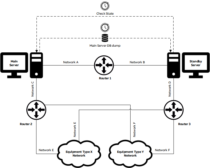 The basic conceptual idea of the FOXMAN-UN Main/Standby Solution is rather simple. In the beginning two servers are set up with a FOXMAN-UN system to manage the same network infrastructure (equipment). Apart from using different IP addresses, the setup of the two FOXMAN-UN systems is identical. One of the servers further on is acting as Main Server, the other one as Standby Server.
