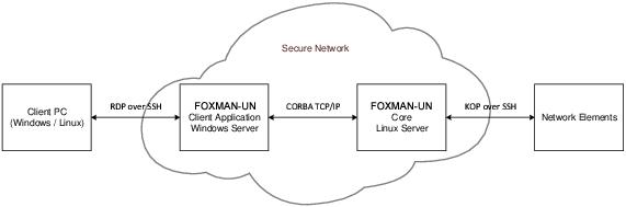 • The FOXMAN-UN Client is deployed on a Windows server collocated in a secure network with the FOXMAN-UN Core Server.