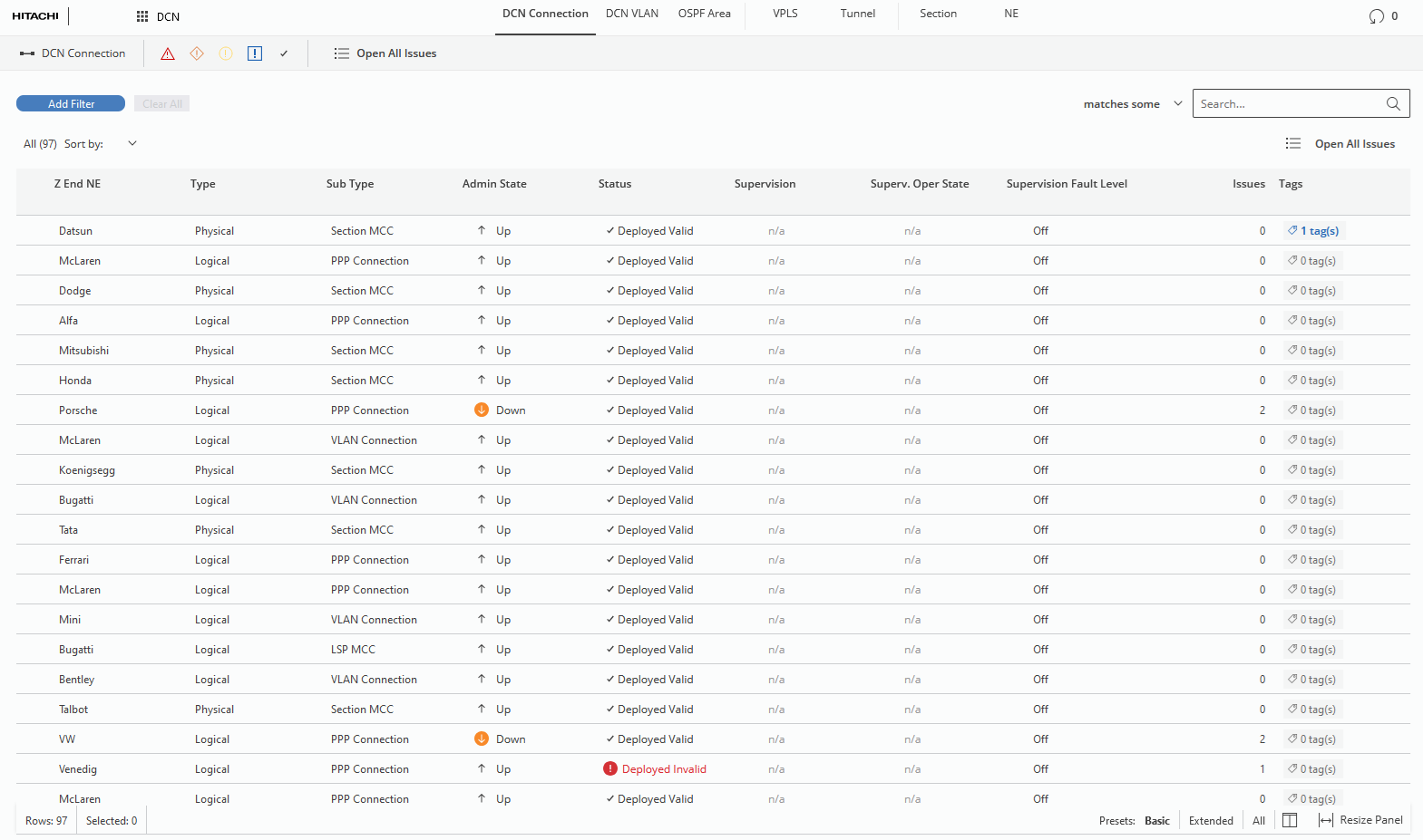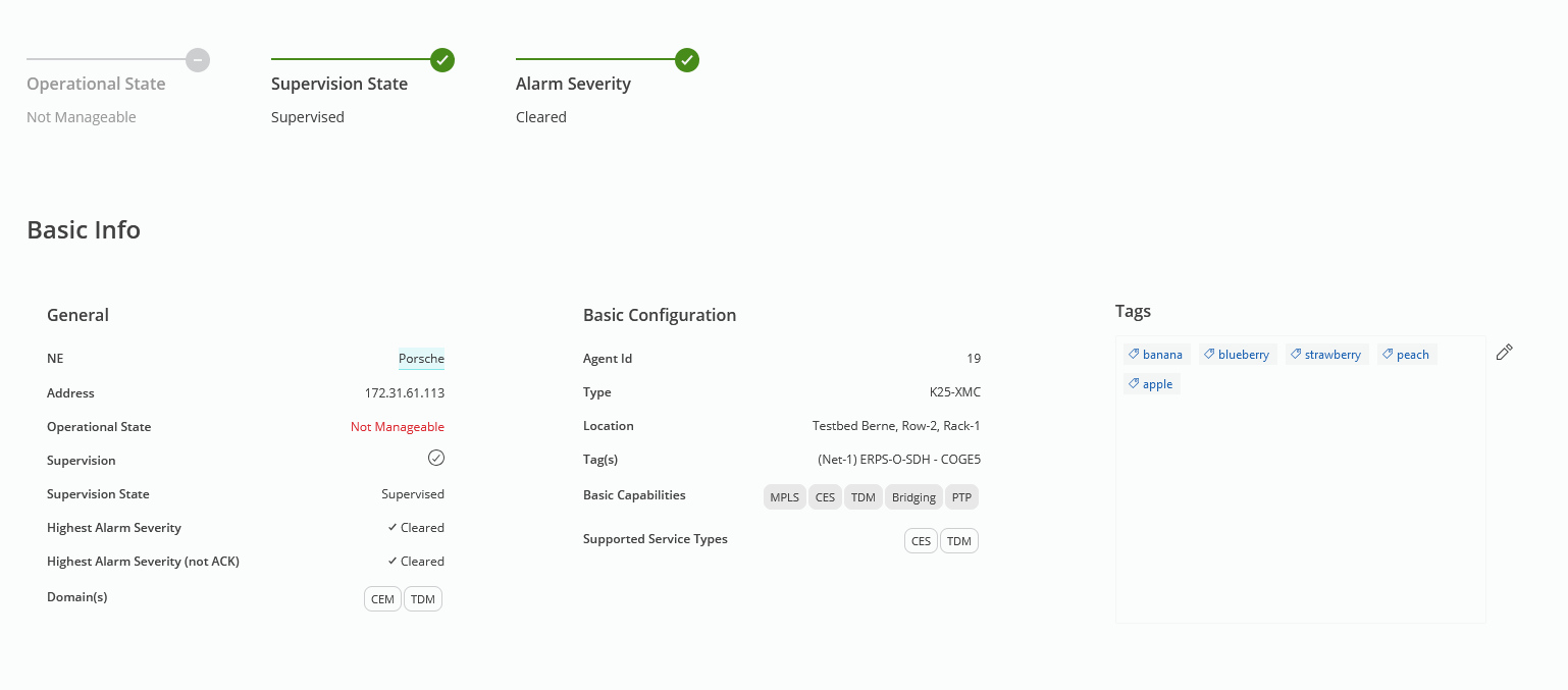 Generally, any object that is of enough interest to have its own views in the Web UI can be tagged (VPWS, NE, Circuit Emulation Service, DCN VLAN, anything…). Example exceptions are Alarms, System Events, and Tasks.