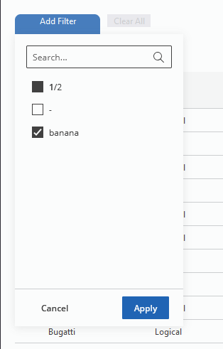 Tables may be filtered by tags, either by adding a filter on the left…