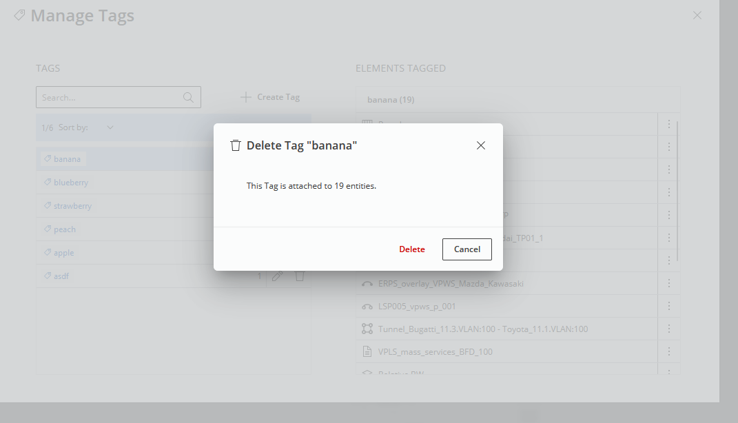 Also the “Delete Tag” modal appears on top; to remove the tag, click the “Delete” button: