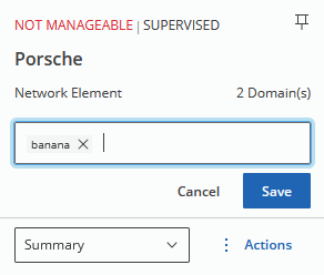 If a tag already exists in the system, it will be shown as an existing option if the input string matches it. Additionally, tags may be removed from the object by clicking “X” on the right side of the badge when the field is in edit mode. Once again, these changes will not actually take place until the “Save” button is not clicked: