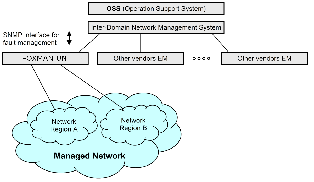 In a multi-vendor environment, FOXMAN-UN takes the role of a vendor specific network element manager that supports the FOX61x and FOX51x families of products.