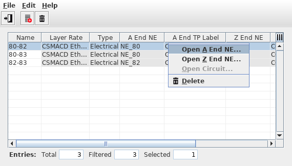 The operator can display the section details including circuits or trails running over the specific section simply by double clicking with the mouse to call the «Section Management» dialog. The dialog displays details of the section showing: