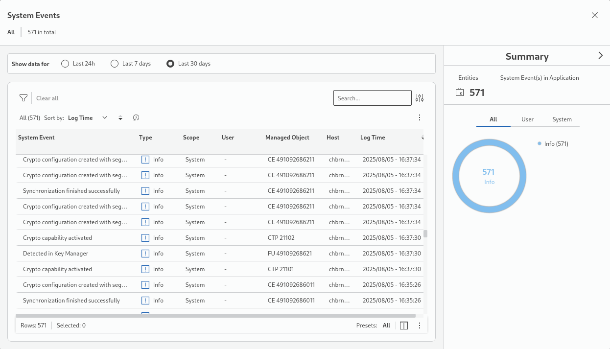 A System Events list is also available in the browser-based UI. It can be opened in browser-based applications from the “System Events” icon in the top selection bar.