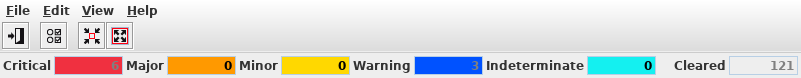 The alarm summary window can be shrunk or expanded. When expanded, it shows the alarm counts including the severity labels.