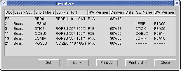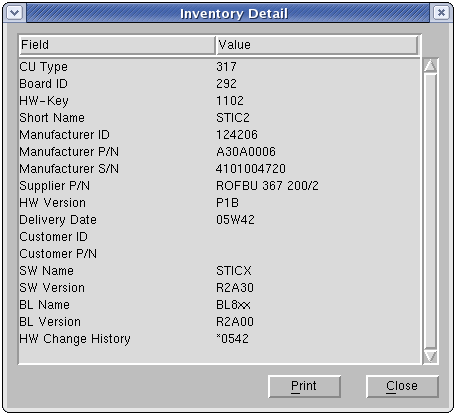FOX515, FOX512 provide detailed information on the units installed. The inventory view provides the units part number along with the Hardware and Software versions as follows: