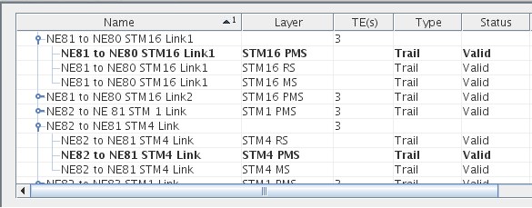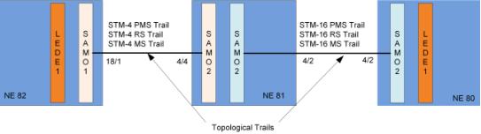 In our example, the FOXMAN-UN NP auto-generated topological trail for each SDH layer: PMS, RS and MS of STM-4 and STM-16 Sections.