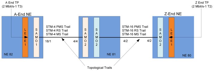 − Create new TEs by specifying the following between a End and z End NEs: VC4 Trail, V12 Trail and P0_nc Circuit.