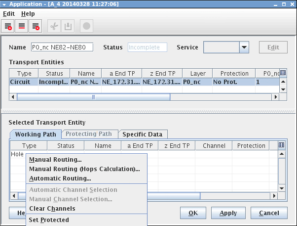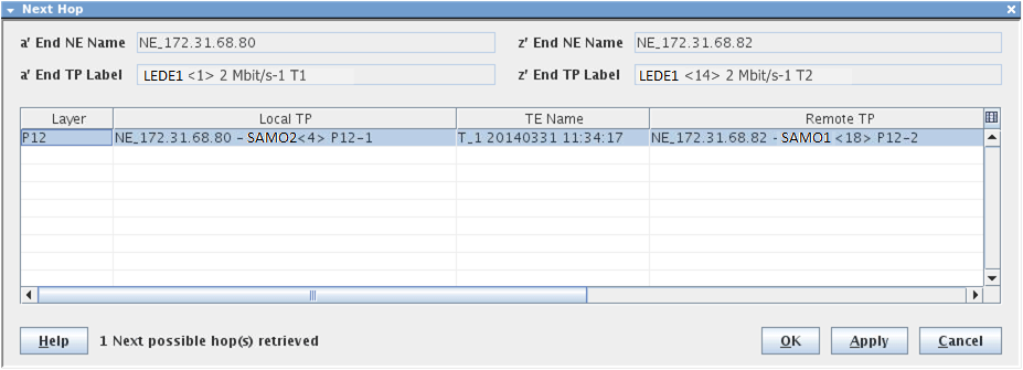 3 NP generates Trails depending on the Layer (e.g. P12) and Local and Remote TP selected to complete the Path. When the Path is complete, the selected TE’s Working Path changes from “Hole” to list of “LC(s)” or Link Connection(s) with “undefined” channels.