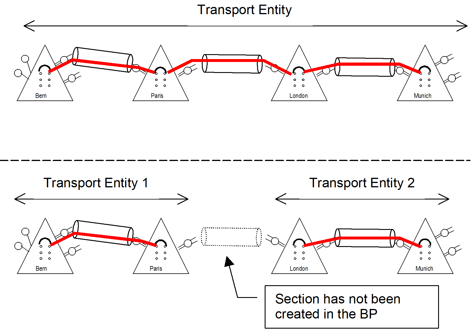 The missing Section in FOXMAN-UN BP shows the NP recognizes one TE (Circuit). If the second Section is missing, then the FOXMAN-UN NP will then recognize two TEs of type SNC.