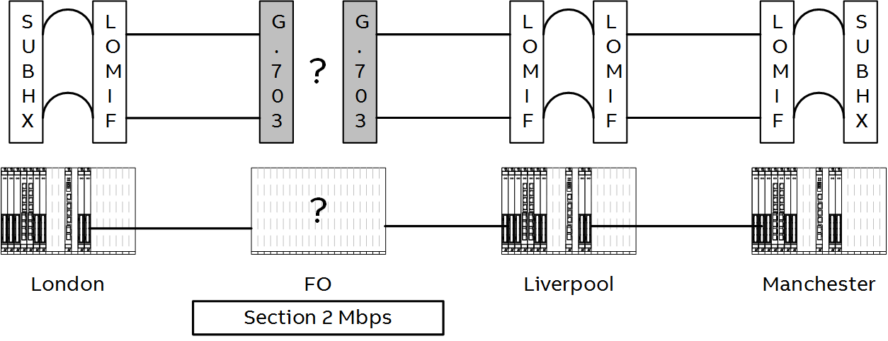 This network contains two 64 kbit/s Circuits on SUBHs utilizing channels T1 and T17.