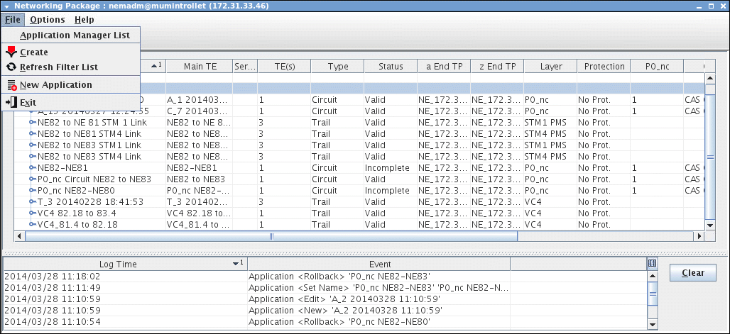 Supervision ► Reload Configuration | Reloads the configuration from the NEs to make sure it is up to date in case of recent changes to the TE. |