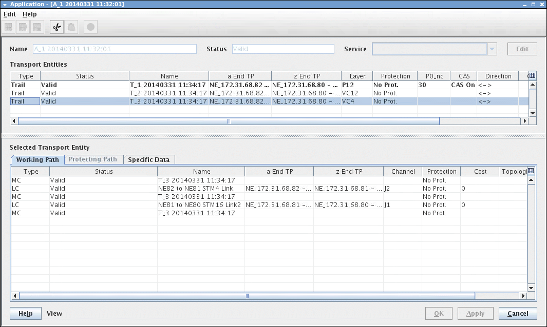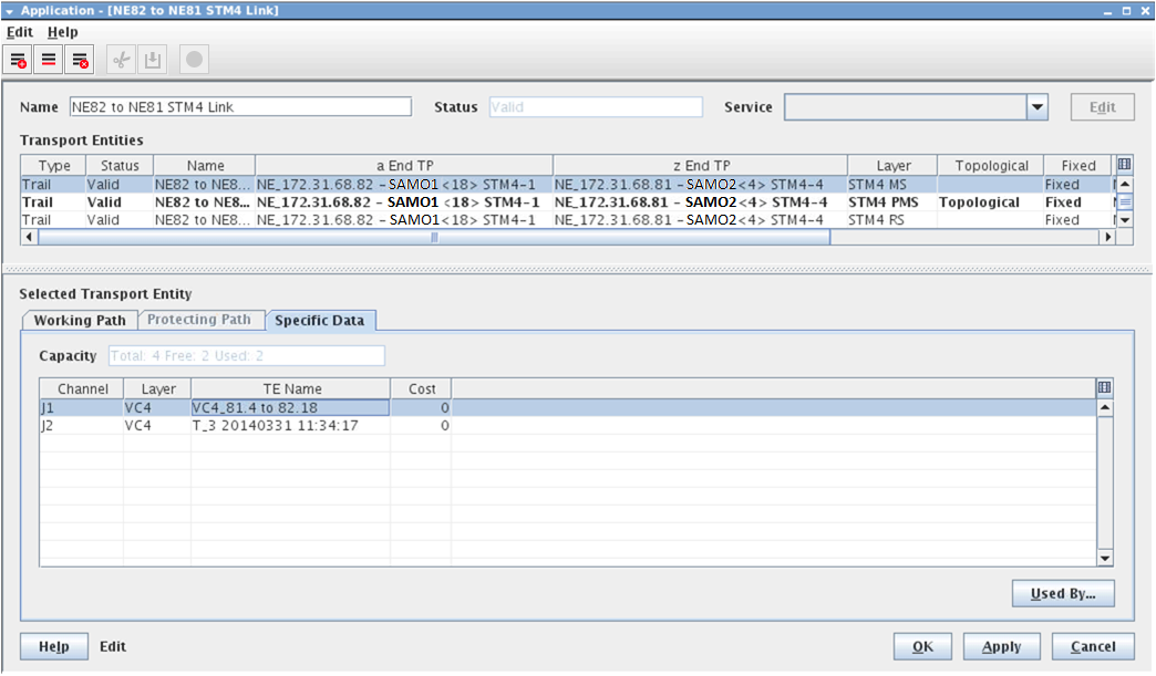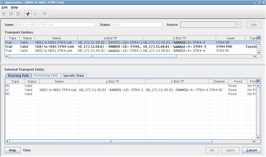 Further details of Application Trail View is possible, e.g. on a specific section or link within the end-to-end connection. For example, to know about the remaining capacity of the STM4 Link between NE 82 and NE 81, right-click on the required LC and select the “Details” context menu as shown in