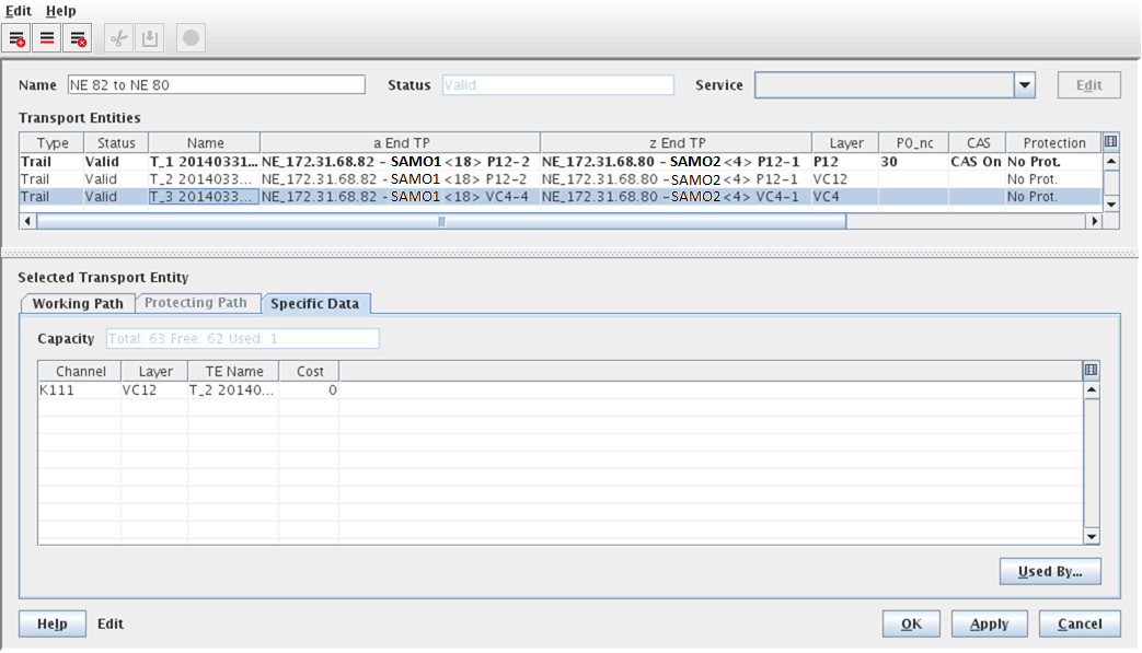 − VC4 Trail Capacity of 63 x VC12 channel (1 x VC12 channel used, and 62 x VC12 Channels free).
