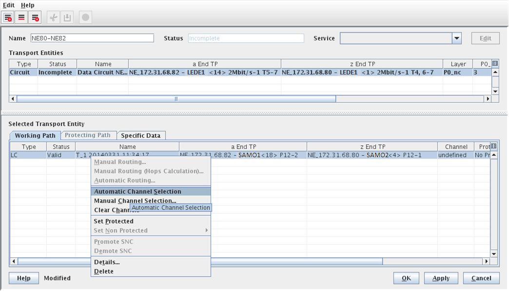 To allow the automatic or manual channel allocation, right-click on the Working Path’s “LC” entry as shown in the screenshot above. This calls the context menus: