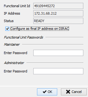 In the enrollment Dialog (“Add to Dirac”), there is an option named “Configure as final IP address on Dirac”. The IP address is automatically detected from what is configured in the node. During the enrollment procedure, we need to define if this will be the one used as final one for DIRAC or not. The use case behind this option is the initial enrollment of the card in a secure room, where different IP addresses will be used instead of the final one.