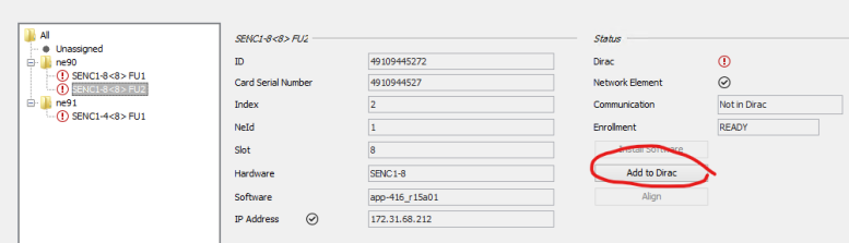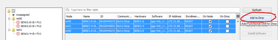 The procedure to add a SENC1 HW unit to DIRAC and to do the initial configuration of the unit is called “Enroll procedure”, or “Add to Dirac”.