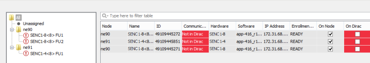 Before the enrollment procedure you will see the units with a red warning, indicating that the unit was not yet enrolled: