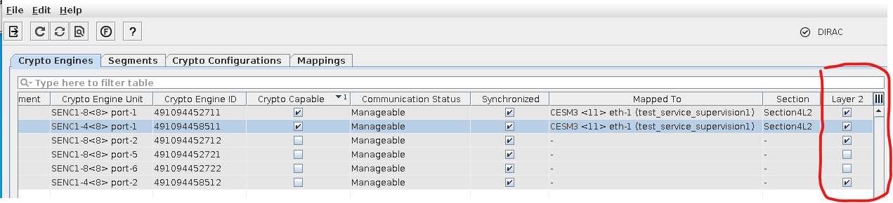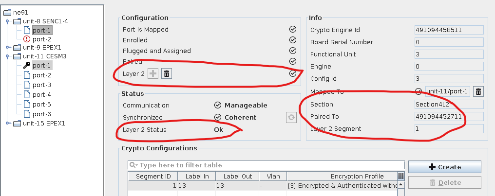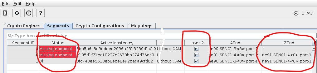 The status of the segments is also specifying the status of the L2 Crypto Configuration.