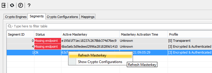 For a MK refresh, you open the context menu of the selected CS and select “Refresh Masterkey”.