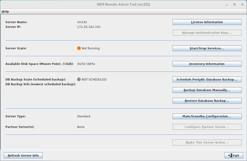 Now select the “vm191” row in the Host Manager. Click on the <Manage> button. The <Login> dialog of the Remote Admin Tool will show up. Log in to the server as an administrator user. Now the Remote Admin Tool will start up.