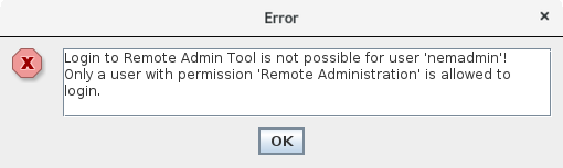 and logging in to the server with insufficient permissions, they will be prompted with a corresponding error message after login: