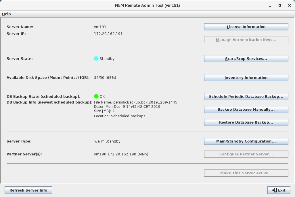 • Database Backup Info (newest scheduled backup)