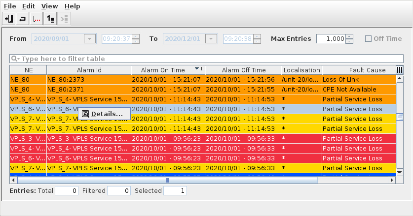 Max Entries | To speed up the retrieve process, alarms are fetched in batches of a definable size. Default is 500. |