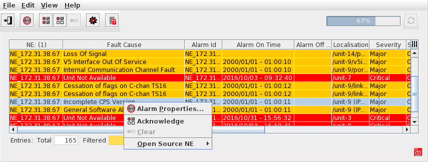 Synchronize Alarms… | | Synchronize alarms with the network and update the list accordingly. This will display a progress bar on the left hand side of the icon until all alarms are synchronized. |