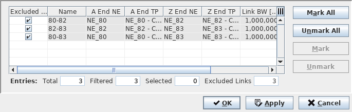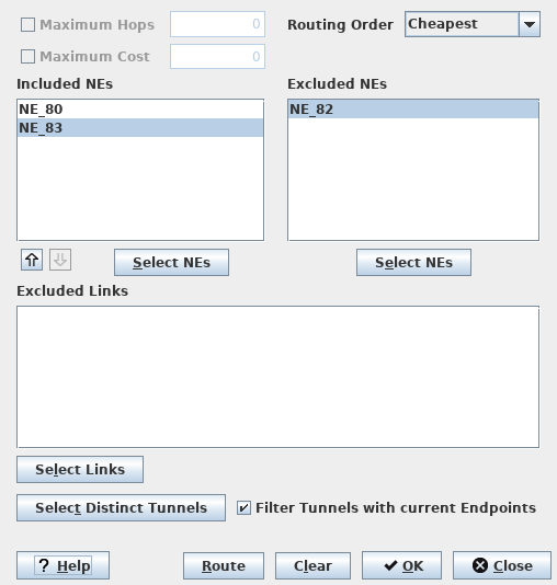 Excluded Links | Shows a list of links (identified by their Link Names) that are excluded from routing. The list can be modified via the “Select Links” and “Select Distinct Tunnels” command buttons. |