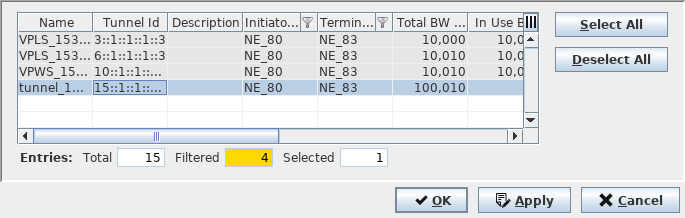 Filter Tunnels with current Endpoints | If marked, only tunnels matching the current tunnel endpoints are shown in the “Select Distinct Tunnels” dialog. |
