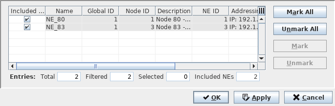 Select NEs: Included NEs | Calls the Choose Included NEs dialog, which allows you to select the NEs to be taken into account during the automatic path calculation. |