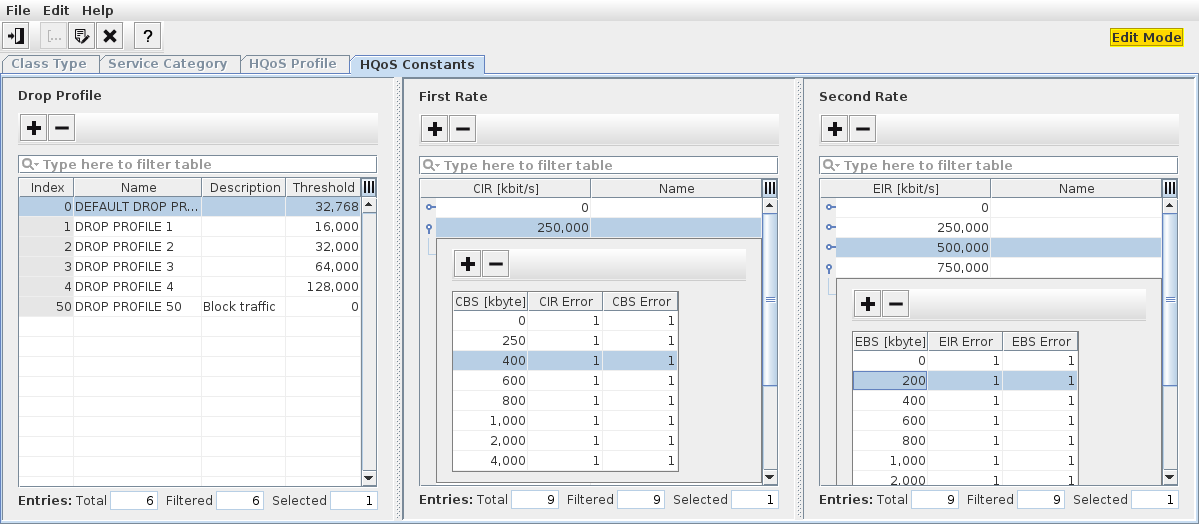 Edit HQoS Constants | ![]() | Switch to edit mode to modify HQoS constants. While in edit mode, this is indicated by “Edit Mode” shown with amber background in the upper right corner of the HQoS Configuration Manager dialog window. |