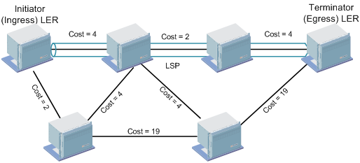 • Automatic Routing automatically creates a complete LSP based on the cheapest route between the Initiator and Terminator.