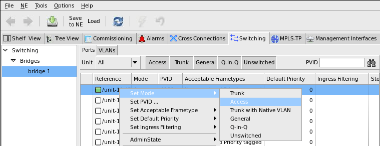 The access port’s ingress direction accepts only untagged or priority tagged frames, which become tagged with port VLAN ID (PVID). The PVID must be member of the bridge VLANs.
