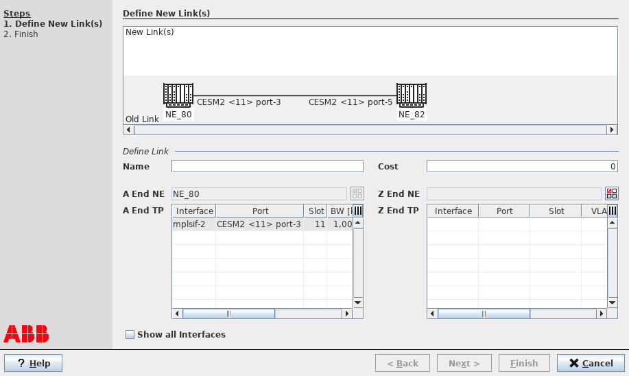 13. From the list of A End TPs (interfaces) select the suitable A End TP (interface) of the newly inserted NE.