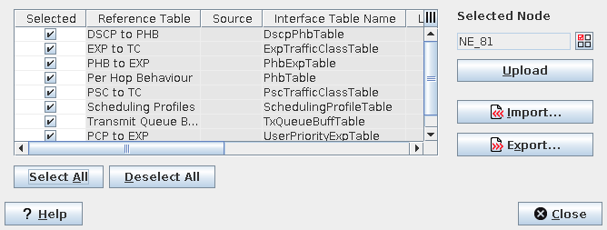 Upload | Upload reference tables from the selected node. |