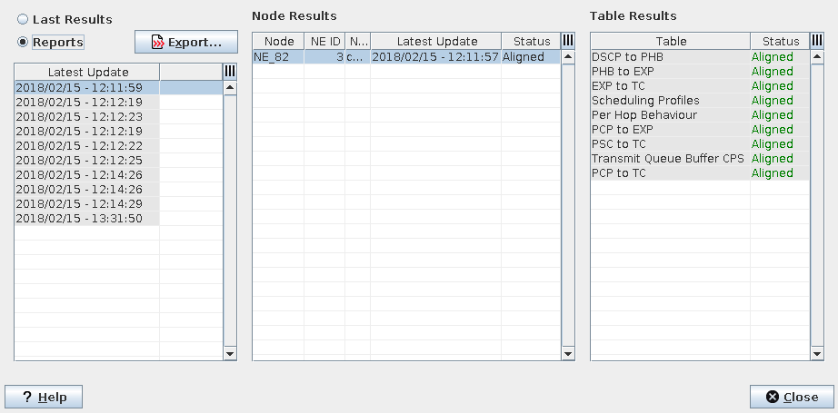 Status | Alignment status of the reference tables for the selected NE. - Aligned: All reference tables are aligned on this NE. - Unaligned: At least one QoS mapping table is not aligned on this NE. - Error: An error has occurred during the alignment. |