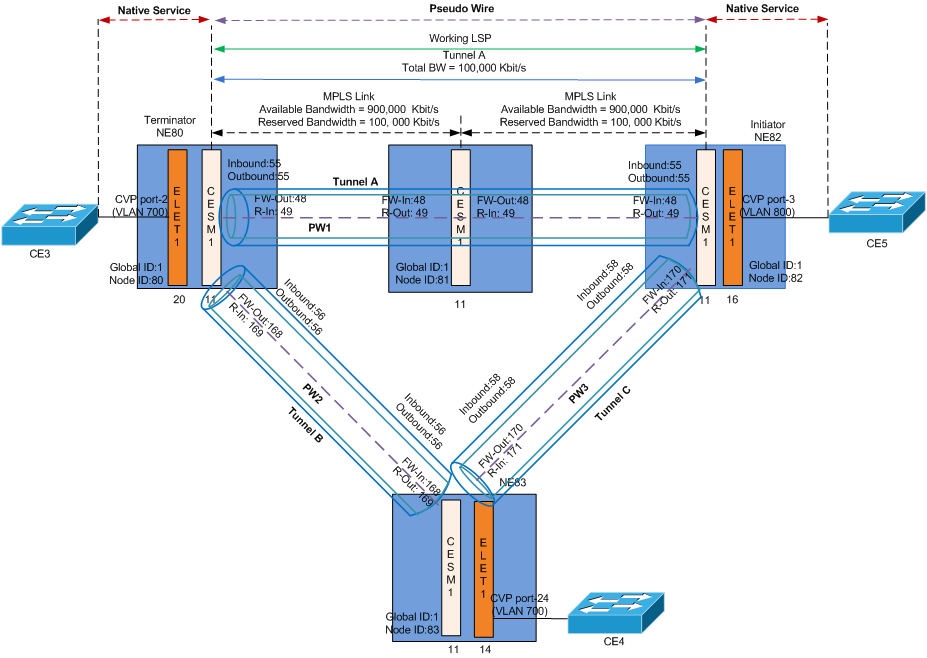 Verify that each PW is bound to the required tunnel.