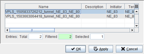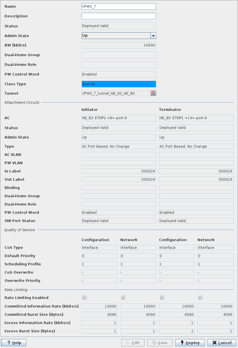 Edit | Changes the dialog to Edit mode. In the Edit mode the tunnel associated with the PW can be selected. To select a different tunnel, open the “Select Tunnel” dialog by clicking on the icon.In the Edit mode the “Deploy” button is active. |