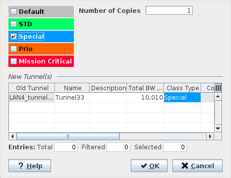 Class Type | The Class Type of the new tunnel. The default Class Type is the same as for the original tunnel. A different Class Type can be set by selecting an existing Class Type in the upper left area. For each selected Class Types a tunnel copy is created. | |