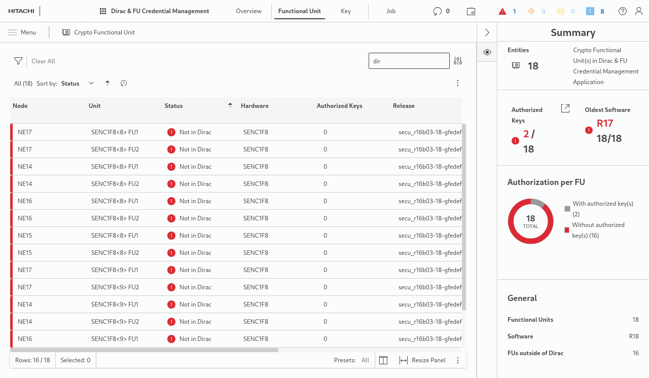• Authorized keys - indicating the number of authorized keys on the FU,