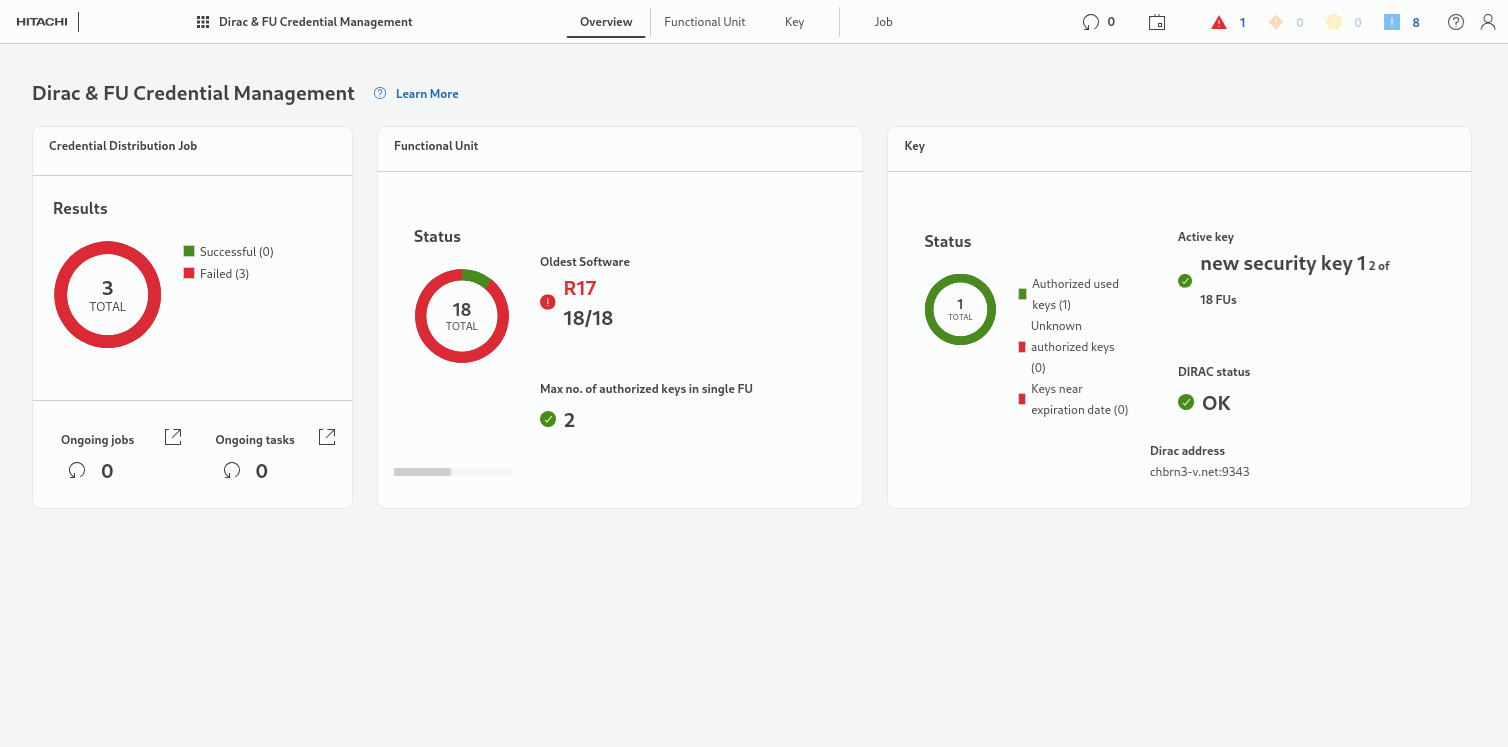 Provides an overview page with summary information on all elements used for DIRAC & SENC1 Functional Units (FU) credential management and their status, including