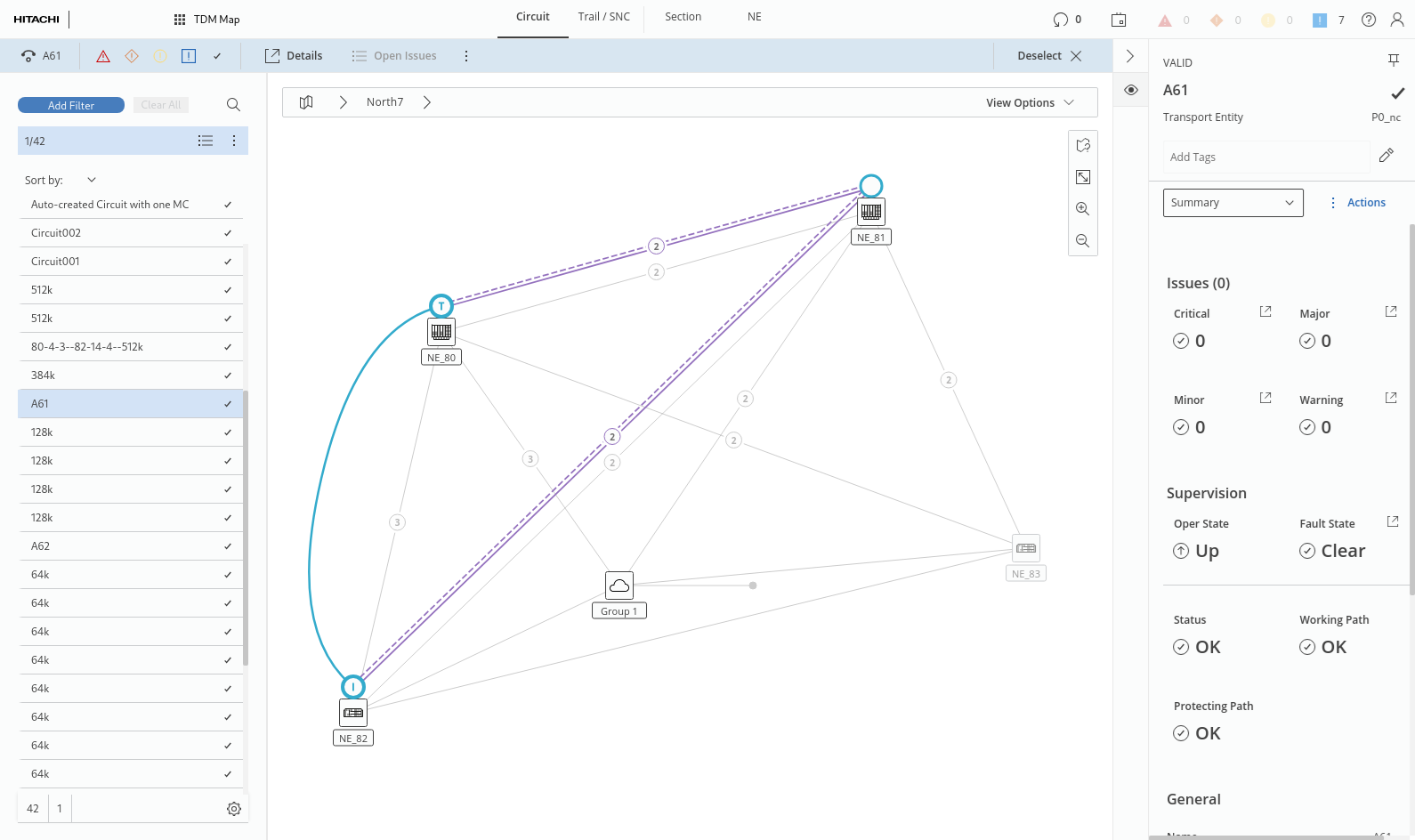 − Working Path (General, Network Elements, Sections, Connections),