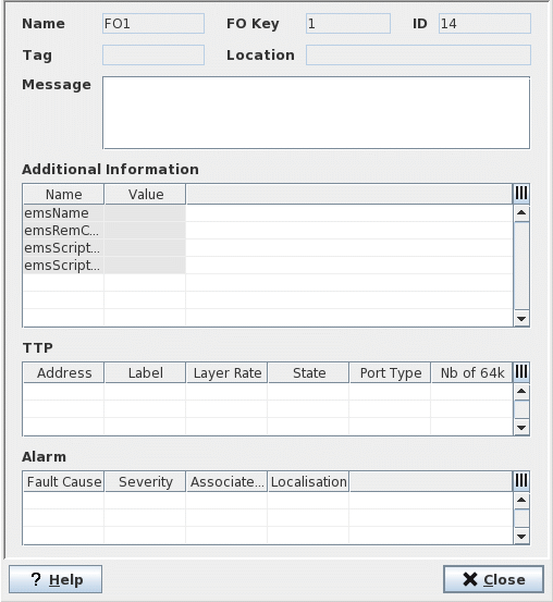 This dialog allows viewing the FO properties without having to open the NEM Configurator. No modifications are possible from here.