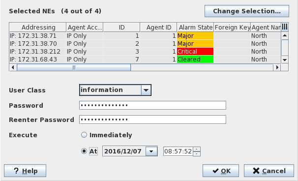 Password | Enter the new password to be applied to the selected NEs in both fields “Password” and “Reenter Password” |