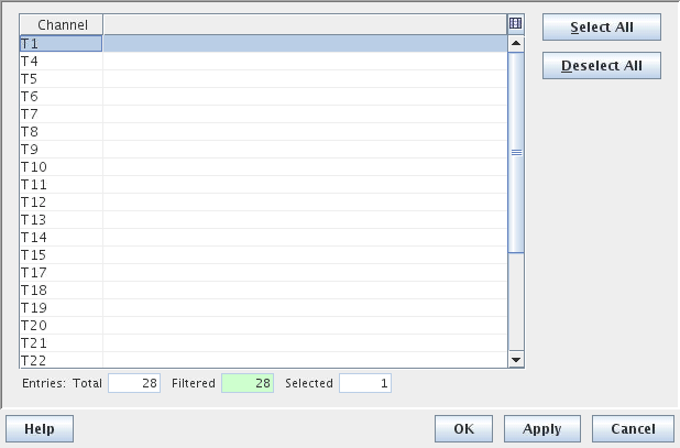 Deselect All | Deselects all selected channels. |