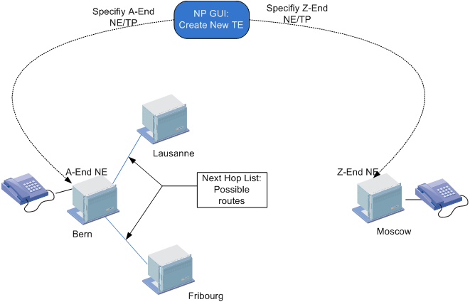 − The “next hop” list are end-to-end connections that are either Trails or SNCs that can be used to transport data from A-End to the next NE, thereby reducing the distance of incomplete Path. This process is repeated until the Path A-End and Z-Endpoint is complete.