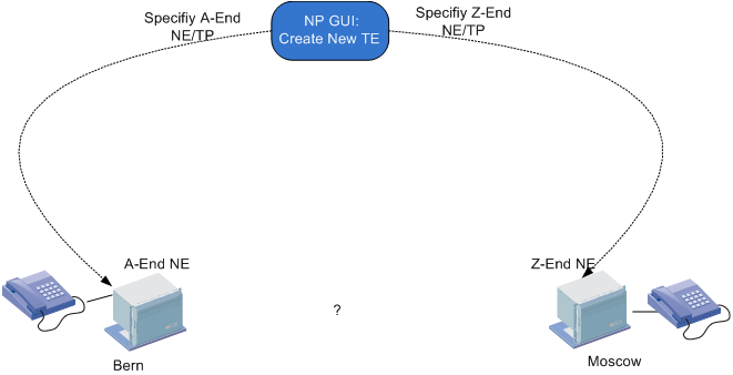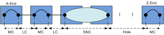 − TE has a Path, which connects the a-end TP (Terminating Point) with the z-end TP with path elements. The path elements can be a SNC, a LC, a MC or a Hole.